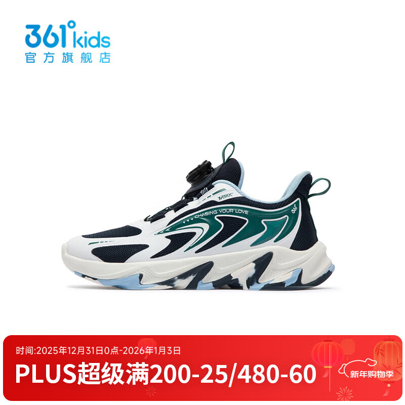 361°【商城同款】童鞋男童儿童跑鞋年春秋中大童新款运动鞋 深石蓝色/羽毛白/海青绿色 35