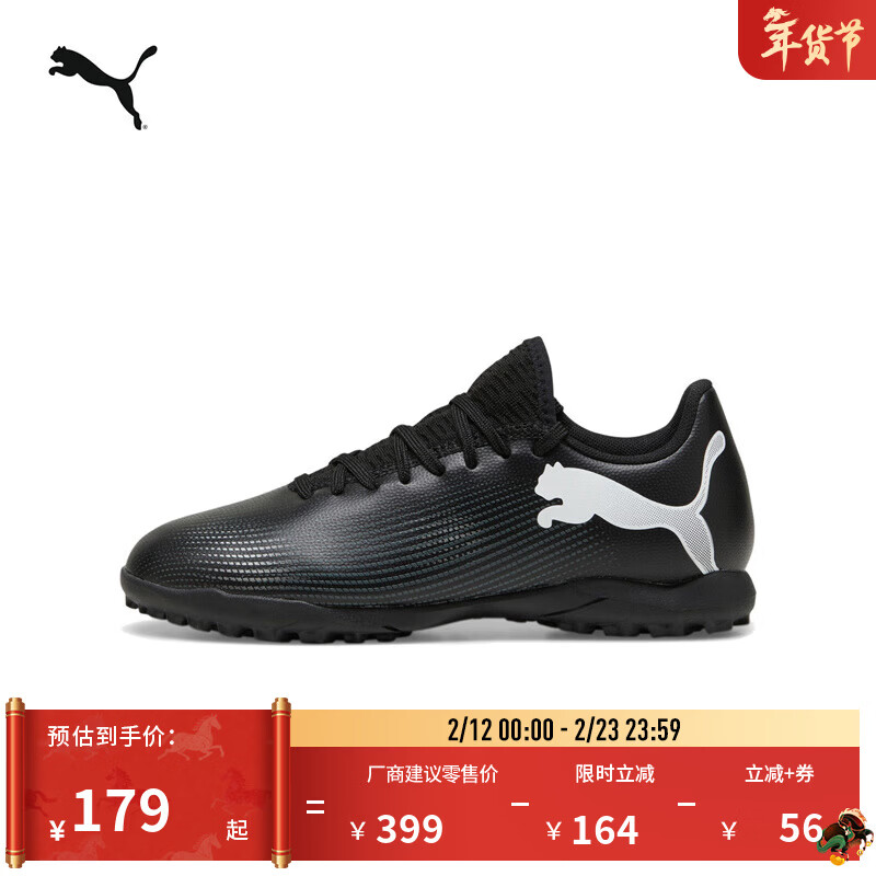 彪马(PUMA)轻便碎钉飞盘足球鞋儿童人造草坪钉鞋FUTURE 7 JR 107737 黑色-白-02 35