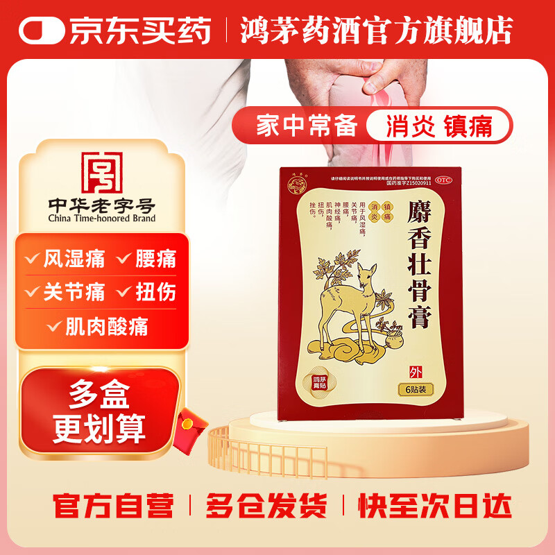 鸿茅 麝香壮骨膏6.5cm*10cm*3贴*2袋 膏药膏贴 镇痛消炎 主治风湿痛关节痛 腰痛 神经痛 肌肉酸痛 扭伤 挫伤