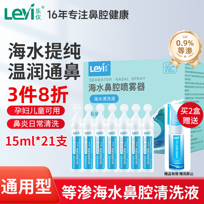 乐仪(leyi)生理盐水清洗液医用婴儿童鼻炎冲洗鼻器0.9%等渗海盐水15ml*21支