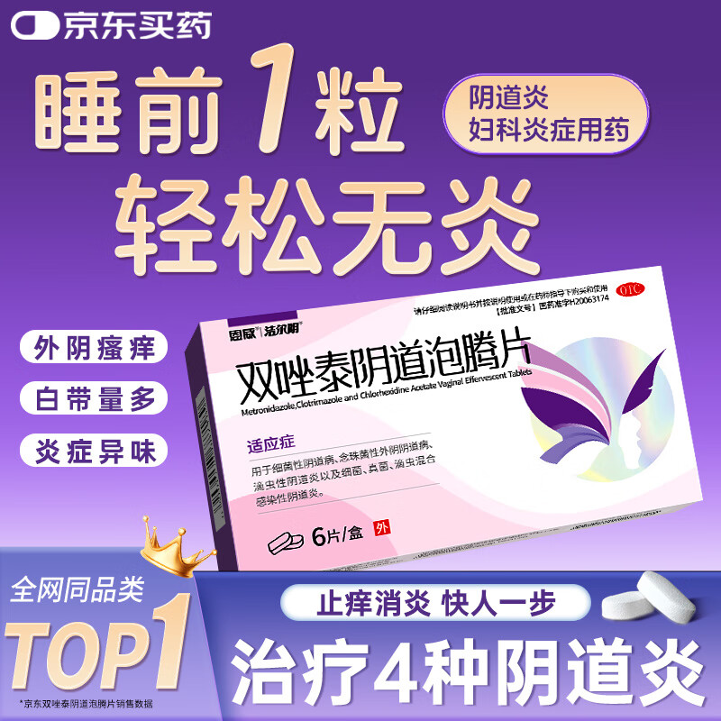 恩威洁尔阴 双唑泰栓阴道泡腾片6粒克霉唑栓霉菌性阴道炎妇科炎症用药阴道塞药甲硝唑栓剂妇科炎症京东自营