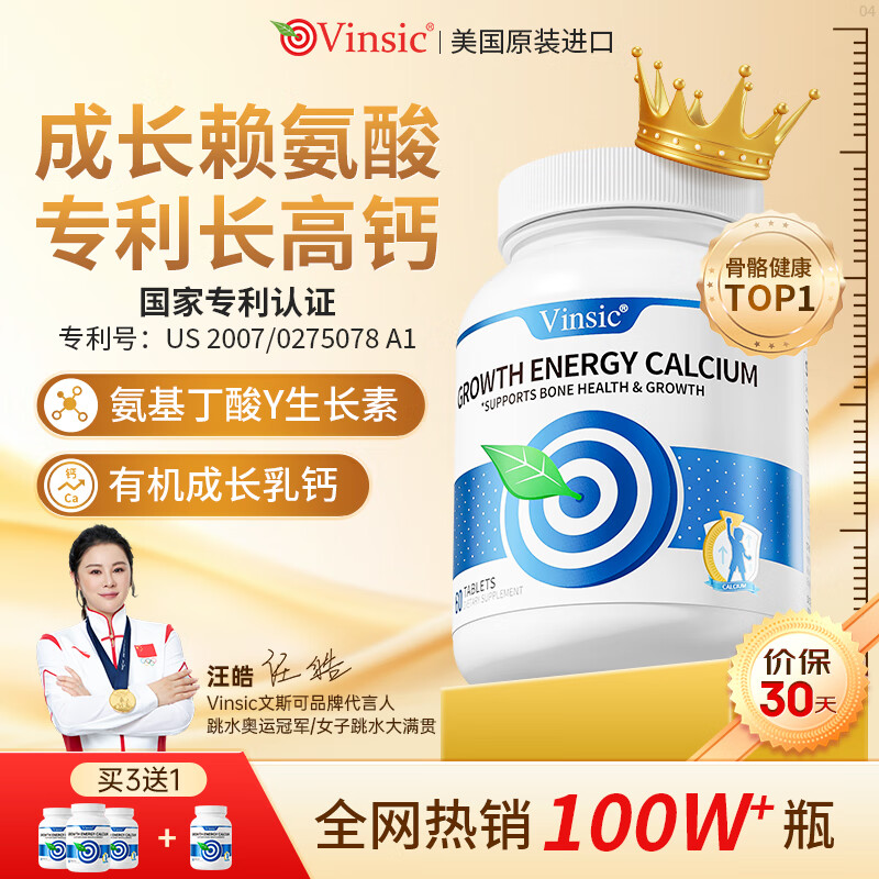 Vinsic钙片青少年儿童4-17岁京东自营赖氨酸助增长高氨基丁酸γ生长激素