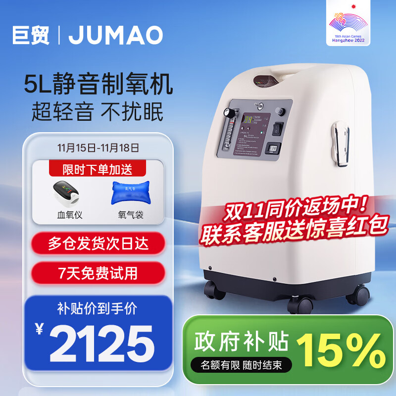 巨贸5L医用制氧机家用轻音老人吸氧机医用级吸氧雾化呼吸机高原吸氧5A