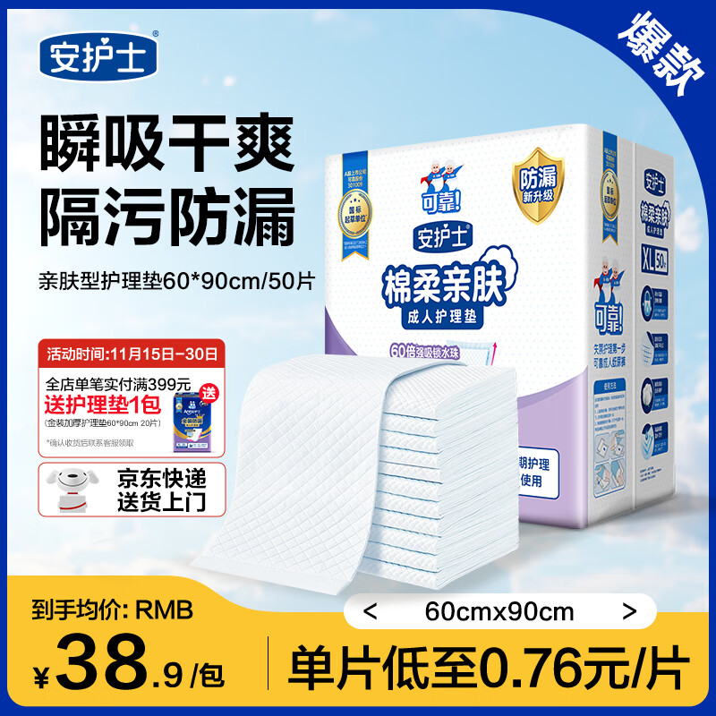 安护士 成人护理垫(尺寸:60*90cm)50片 孕妇产褥垫多功能老年人隔尿垫