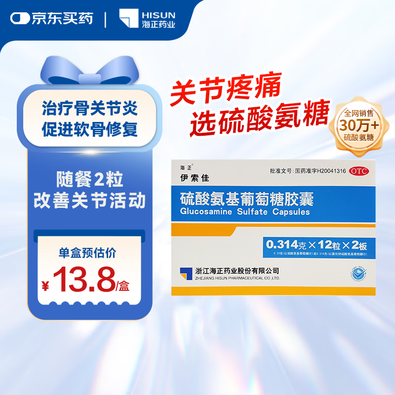 伊索佳硫酸氨基葡萄糖胶囊 0.314g*12粒*2板 氨糖原发性及继发性骨关节炎 氨糖 氨糖软骨素