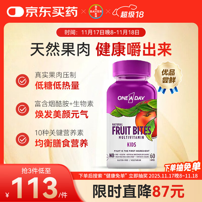 One A Day拜耳儿童多维真果肉水果软糖60粒/瓶 复合维生素软糖vbb族