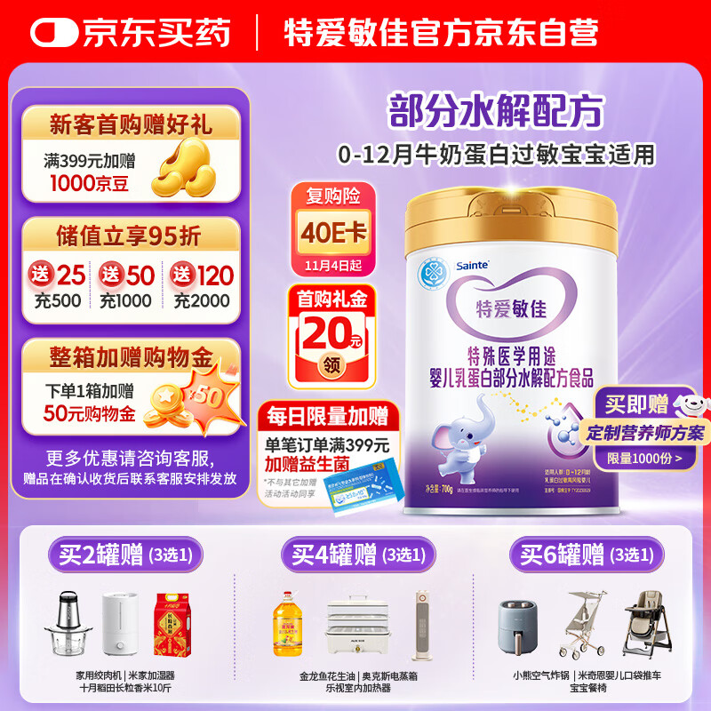 iSainte圣桐特医特爱敏佳部分水解配方奶粉0-12个月乳蛋白过敏婴幼儿700g