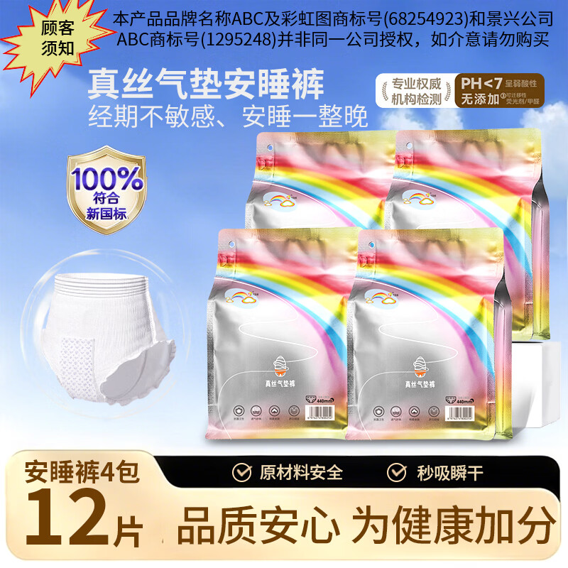 S彩虹图品牌夜安裤真丝安睡裤型卫生巾生理裤均码12条安心裤 12条