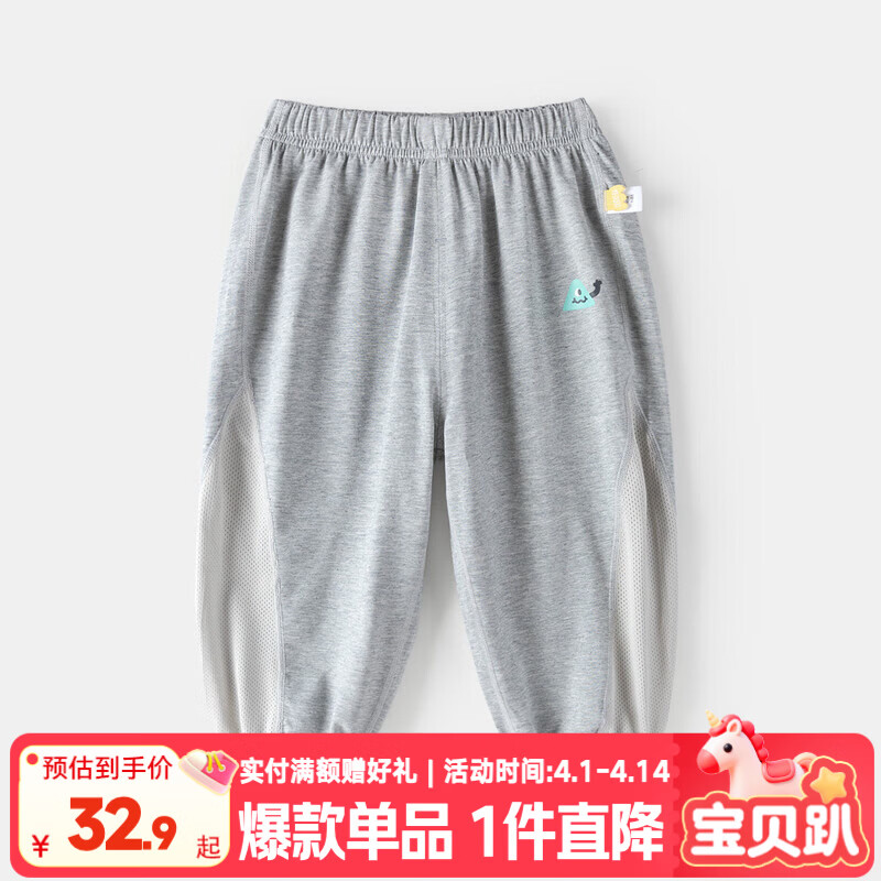 嘟嘟家儿童裤子夏装男童防蚊裤夏季宝宝休闲长裤女童透气网眼童裤潮童装 麻灰色 110