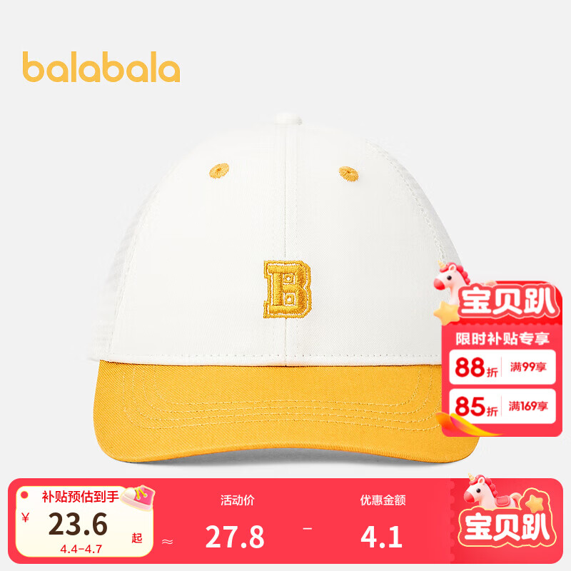 巴拉巴拉儿童棒球帽男童女童遮阳帽夏季薄款撞色拼接时尚 黄白色调00331 110cm(适用头围52-54cm,3-6岁)