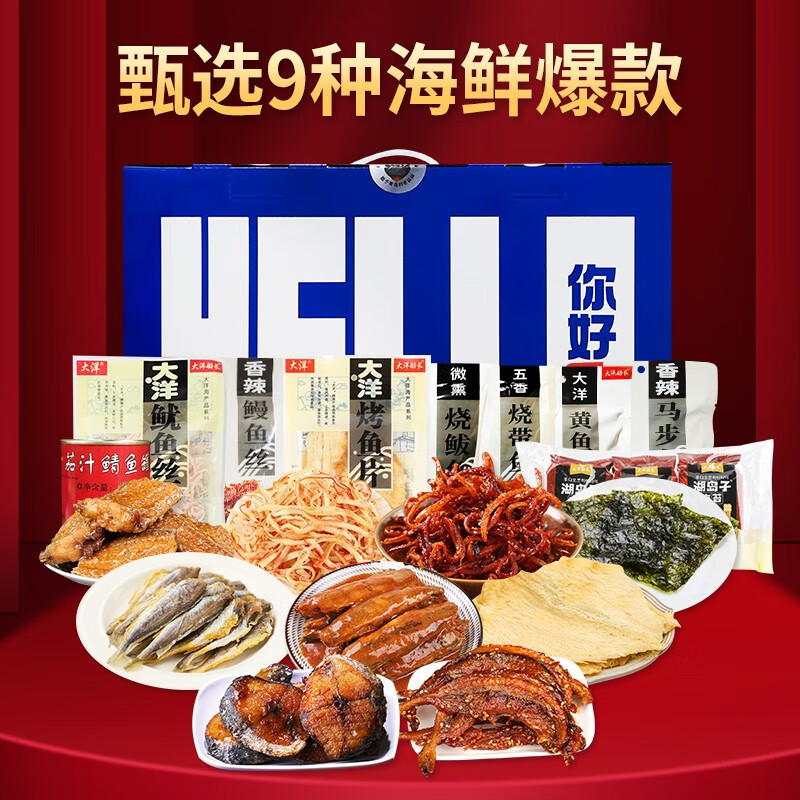 大洋船长青岛特产小鱼鱼干烤鱼片鱿鱼丝海鲜热门商品即食干货海味零食礼盒 1080g礼盒*1盒