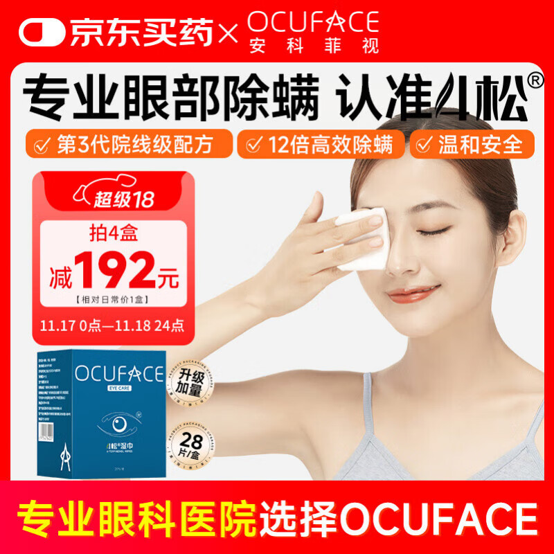 OCUFACE升级28片官方4松油醇湿巾茶树精油除螨虫眼部专用四松油醇棉片