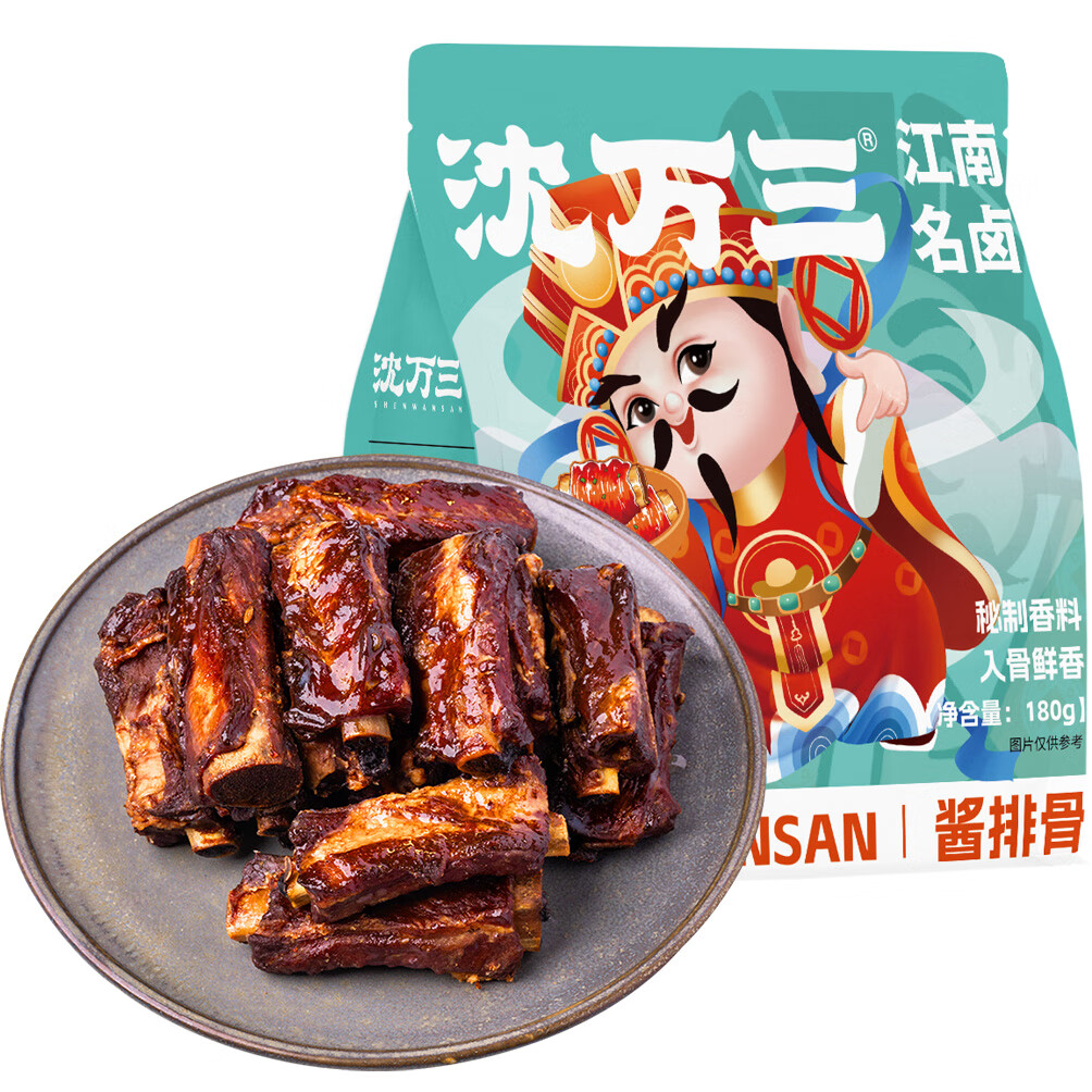 沈万三苏州特产酱排骨无锡风味酱卤排骨猪肋排骨熟食小包装即食零食 180g猪肋排内置小包装即食