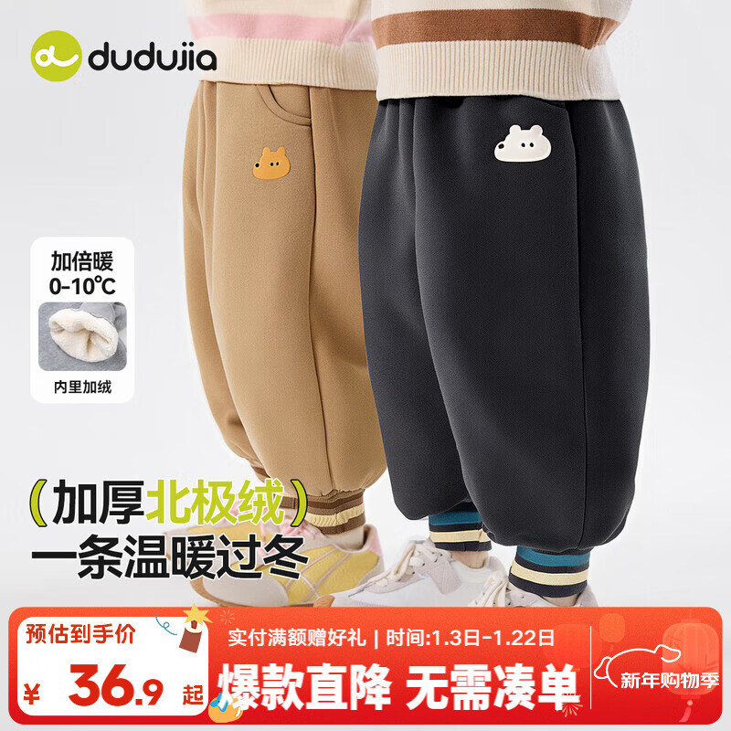 嘟嘟家儿童裤子加厚保暖冬装宝宝长裤潮冬款男童加绒裤卡通女童童装洋气 深灰色 100