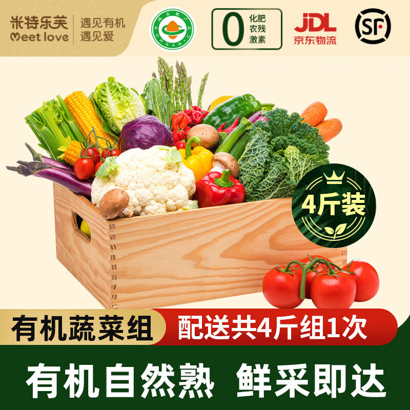 米特乐芙有机蔬菜套餐新鲜茄果根茎叶菜品种丰富自选搭配有机无农残蔬菜包 单次配送4斤(2叶菜、1菌菇、2根茎)组合
