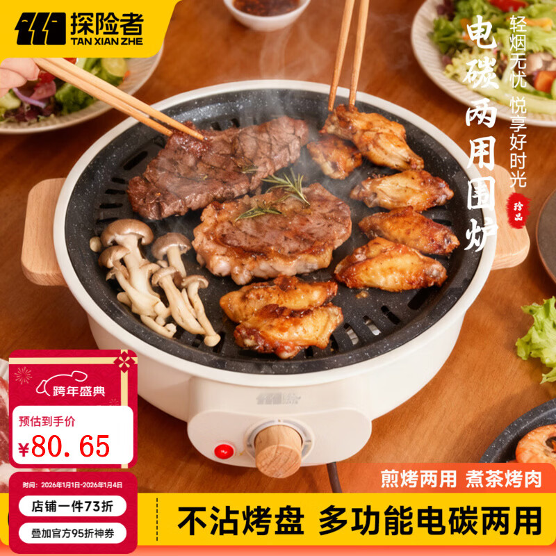 探险者(TAN XIAN ZHE)围炉煮茶全套电碳两用围炉套装户外烧烤炉家用电烤炉围炉煮茶壶 【电碳两用】乳白色-烤网烤盘(送起网器)