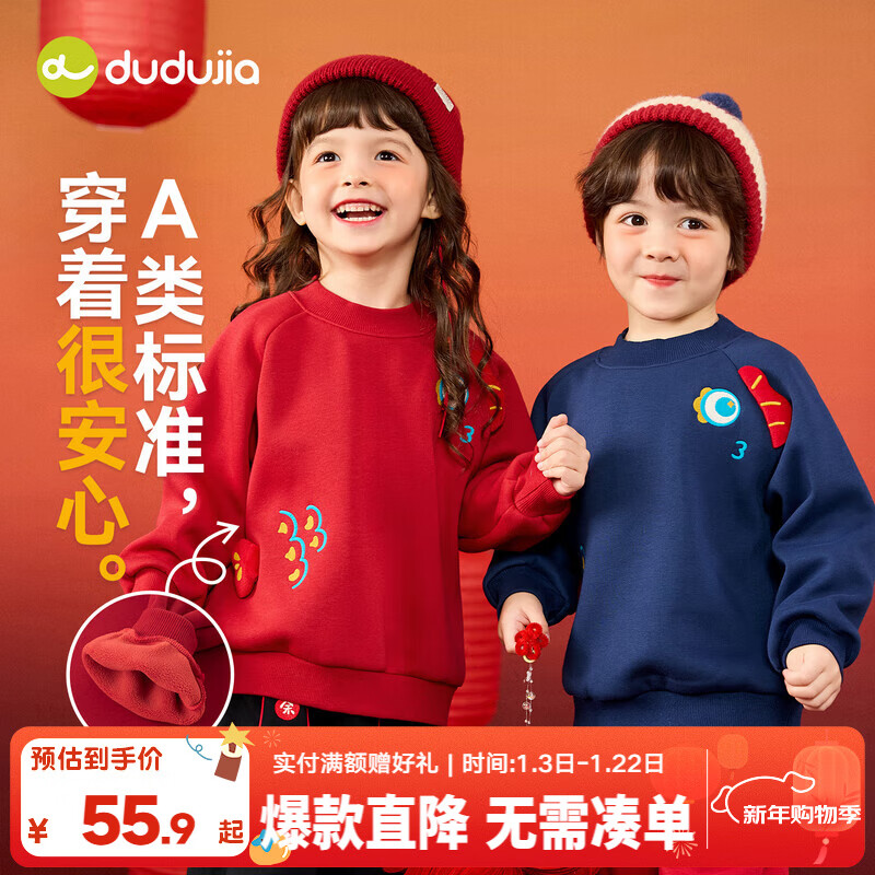 嘟嘟家【鲤跃新辰】儿童卫衣拜年服冬装男童上衣新年冬款红色过年衣服潮 红色 90