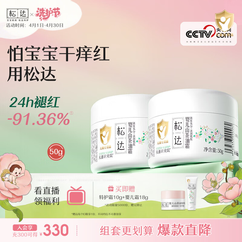 松达儿童面霜婴儿干痒红润肤乳婴儿山茶油霜滋润保湿防裂四季面霜 【90%选择】山茶油霜50g*2