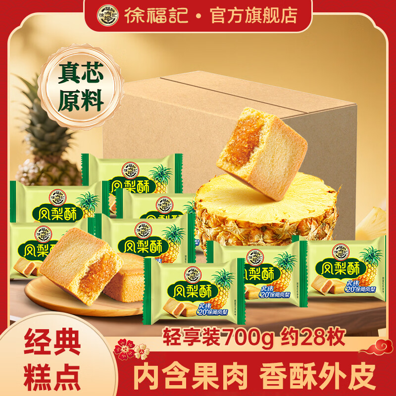 徐福记 包馅酥凤梨酥一口酥台湾风味营养早餐休闲零食下午茶小吃 【箱装28枚】约700g