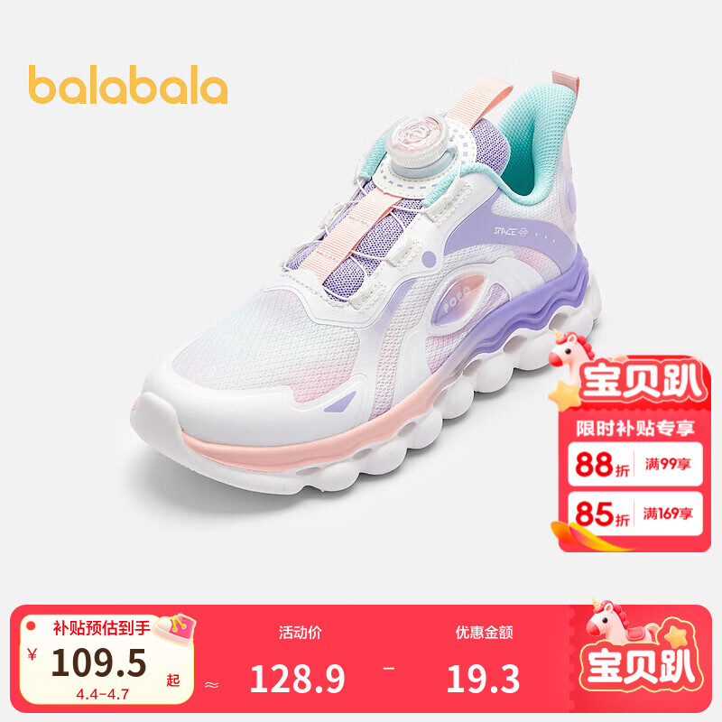巴拉巴拉巴拉巴拉童鞋儿童运动鞋透气网布鞋女童跑步鞋春秋旋钮扣鞋子潮流 粉紫70001 35