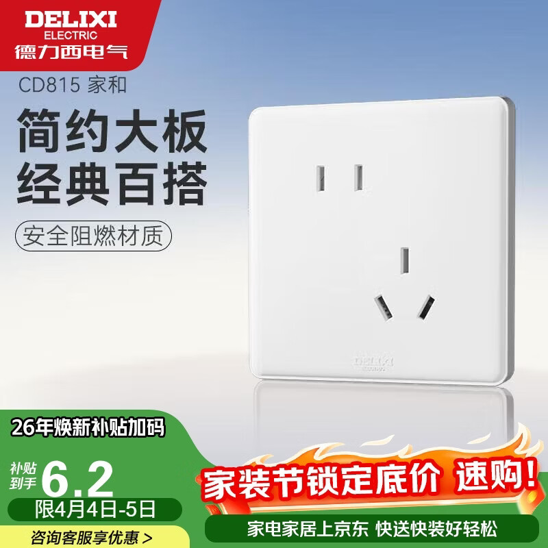 德力西(DELIXI)开关插座面板 CD815系列 10A斜五孔插座 QSE86ZS/3