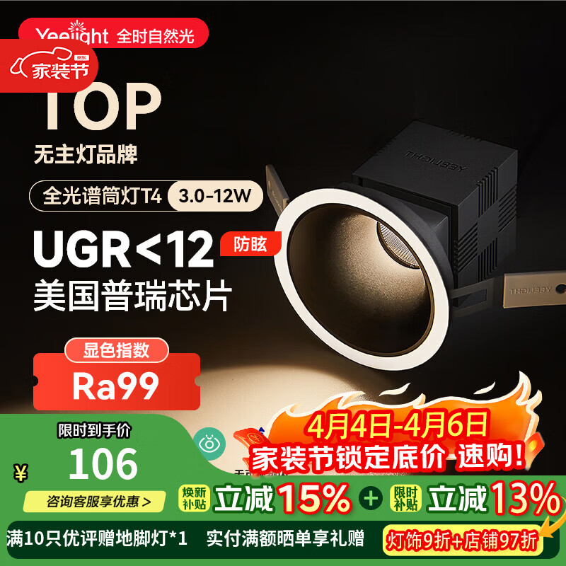 易来全光谱筒射灯T4防眩高显指美国普瑞芯片嵌入式过道走廊照明灯 T4 3.0-全光谱筒灯【12W-50°】
