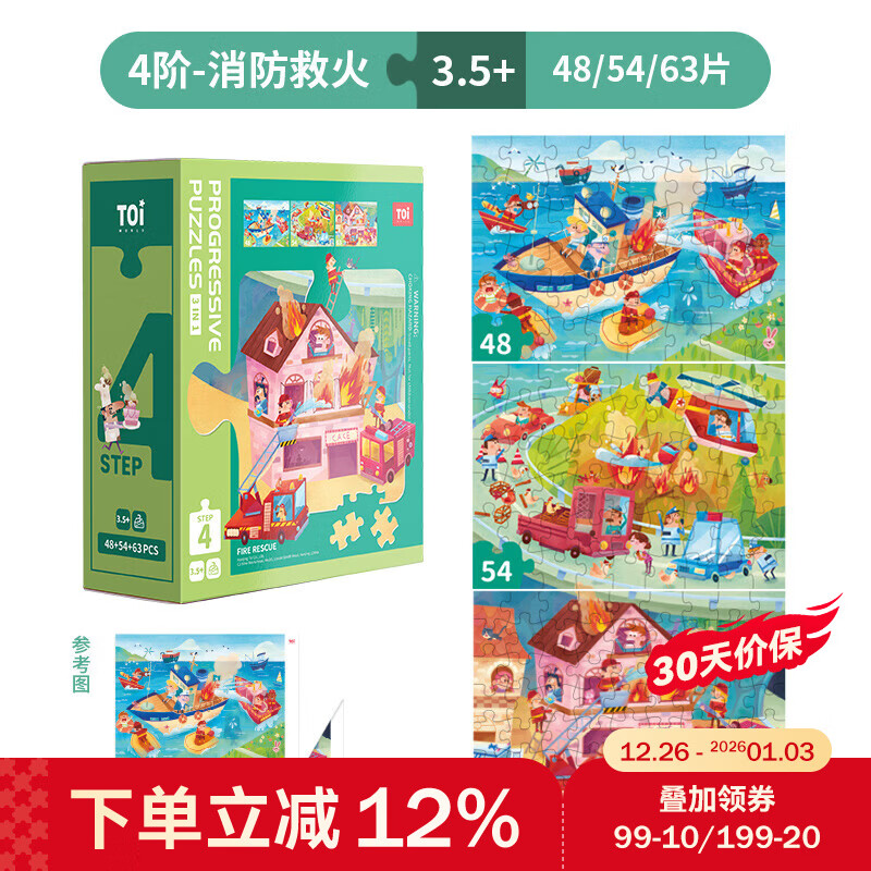 TOI儿童特供拼图3-6岁进阶拼图早教玩具男孩女孩生日礼物 4阶-消防救援(适合3-4.5岁3盒)