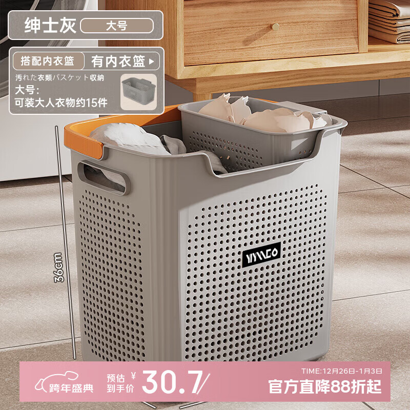 稻草熊脏衣篓家用卫生间浴室洗澡洗衣篮脏衣篮衣服收纳筐 大号绅士灰+内衣篮