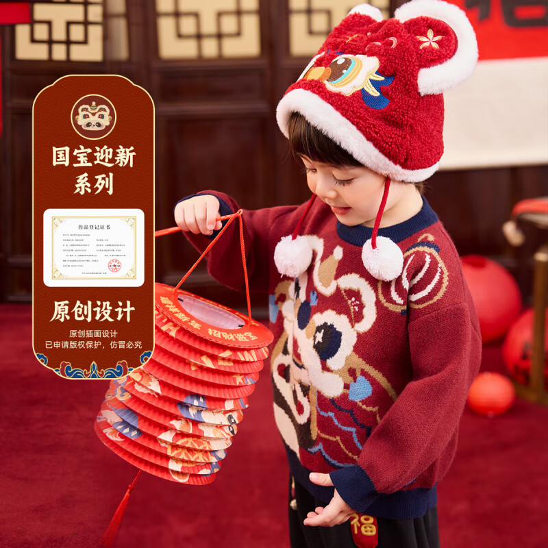 嘟嘟家儿童唐装男童中国风拜年服宝宝红色喜庆毛衣女童周岁礼服冬 红色 90