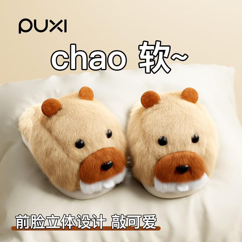 朴西土拨鼠亲子棉拖鞋女冬季可爱外穿居家防滑厚底保暖棉鞋棉拖鞋 浅棕 【棉拖】 30 【210mm】