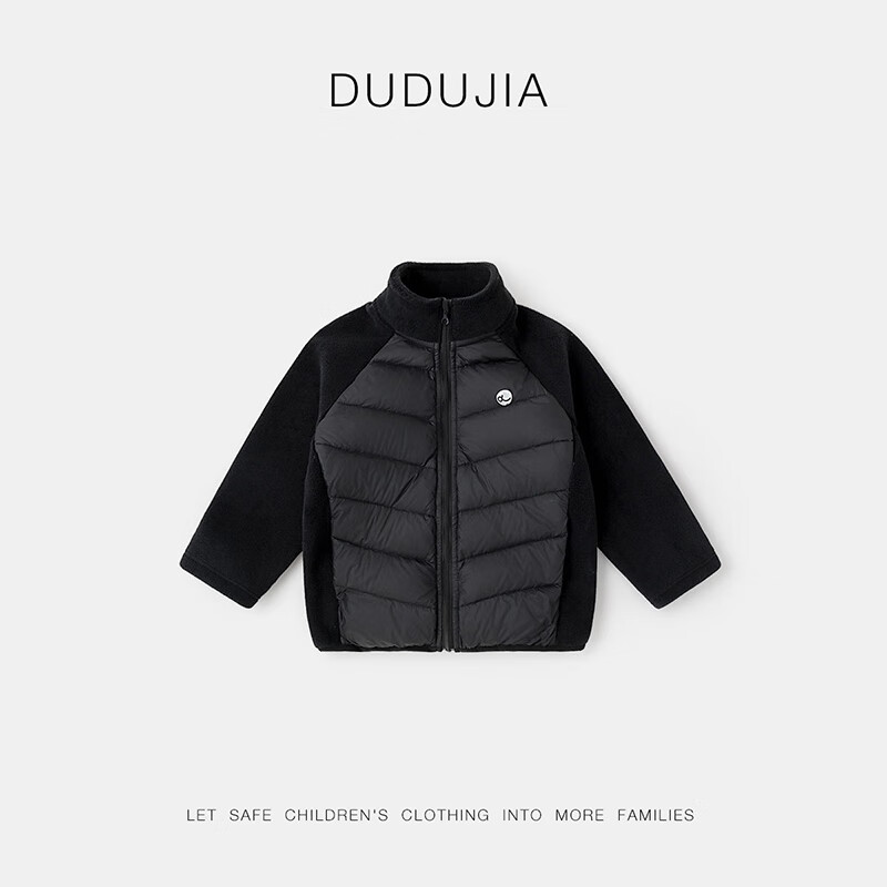 嘟嘟家【拼接羽绒】男童秋冬加绒外套儿童轻薄羽绒服女童休闲奥粒绒上衣 黑色 90