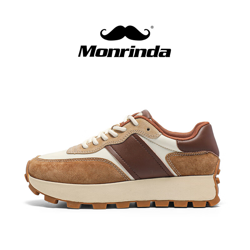 MONRINDA真皮阿甘鞋2025年新款复古厚底增高情侣老爹鞋轻便运动休闲鞋 木乃棕 37 (235mm)