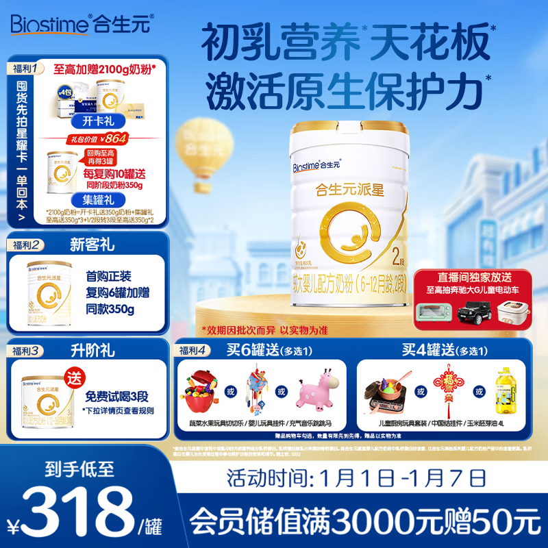 合生元(BIOSTIME)派星 较大婴儿配方奶粉 2段(6-12个月) 新国标 800g