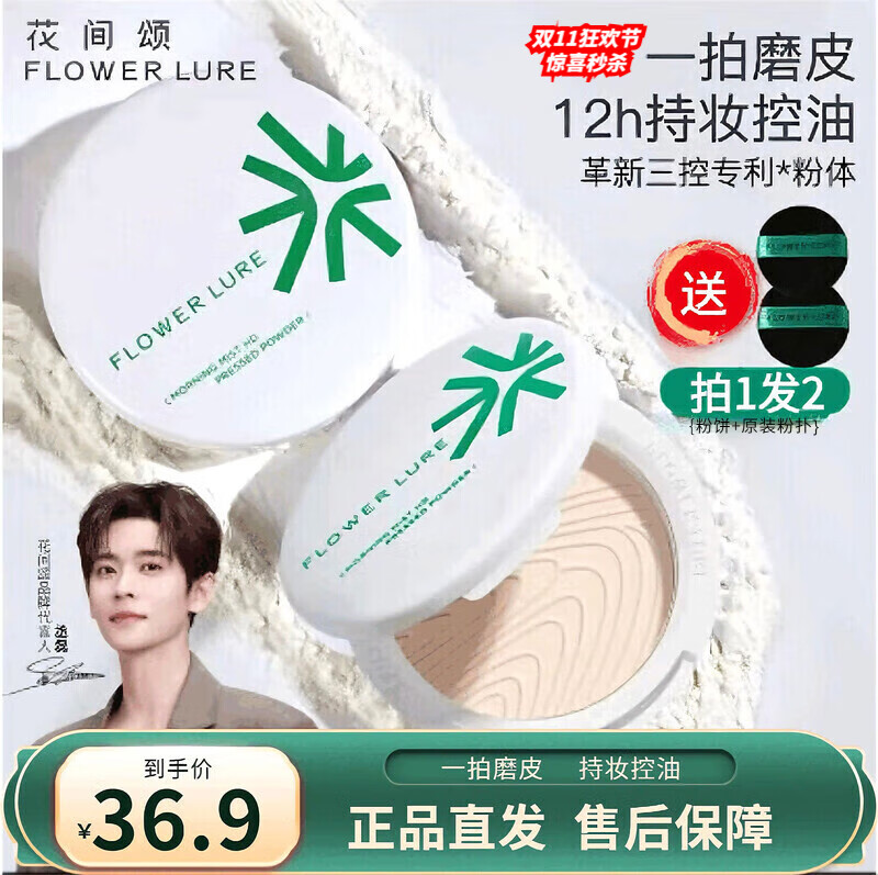 Flowerlure花间颂粉饼定妆控油补妆粉底修容两用粉饼超持久遮瑕散粉不脱妆干皮油皮 N01柔肤色【适合小麦偏黑】7.2g*1盒