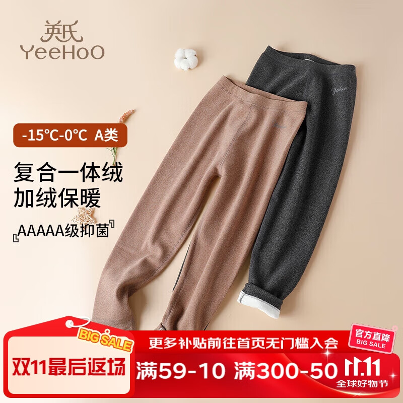 英氏 YEEHOO儿童加绒秋裤男女童保暖裤男孩女孩睡裤保暖裤内穿裤子 咖色 160