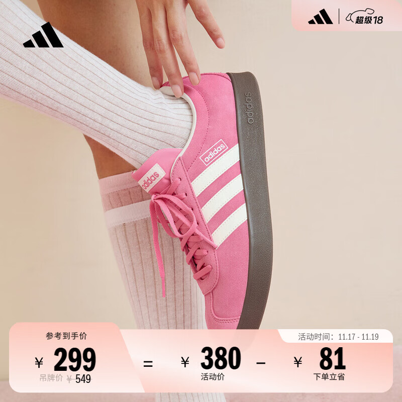 adidas「T头鞋」VL COURT复古休闲板鞋德训鞋男女阿迪达斯轻运动 粉色/白色 37
