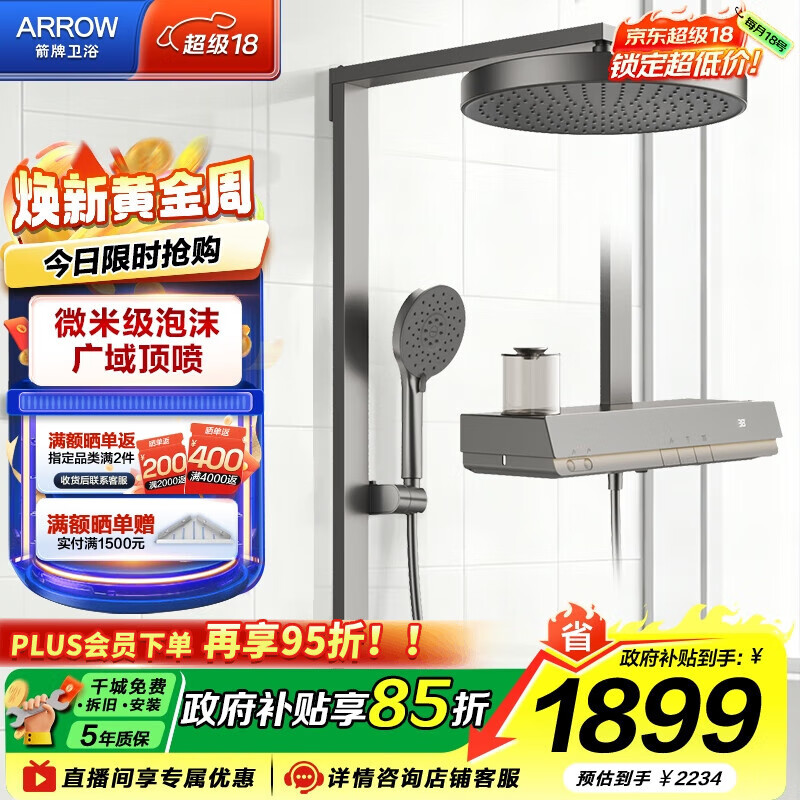 箭牌(ARROW)淋浴花洒套装方杆数显钢琴按键大置物台K880三功能泡泡淋浴花洒 枪灰-专利柔感泡泡33900GGW