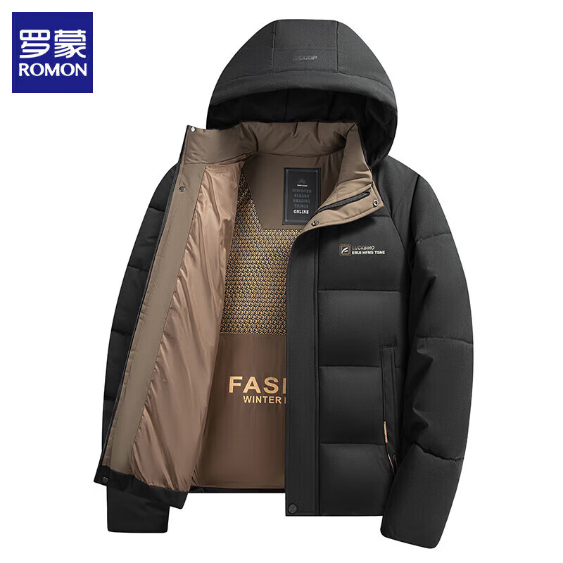 罗蒙(ROMON)棉衣男外套2025冬季新款加棉保暖男士连帽棉服男装棉袄爸爸装 2858黑色 3XL (建议体重130-145斤)