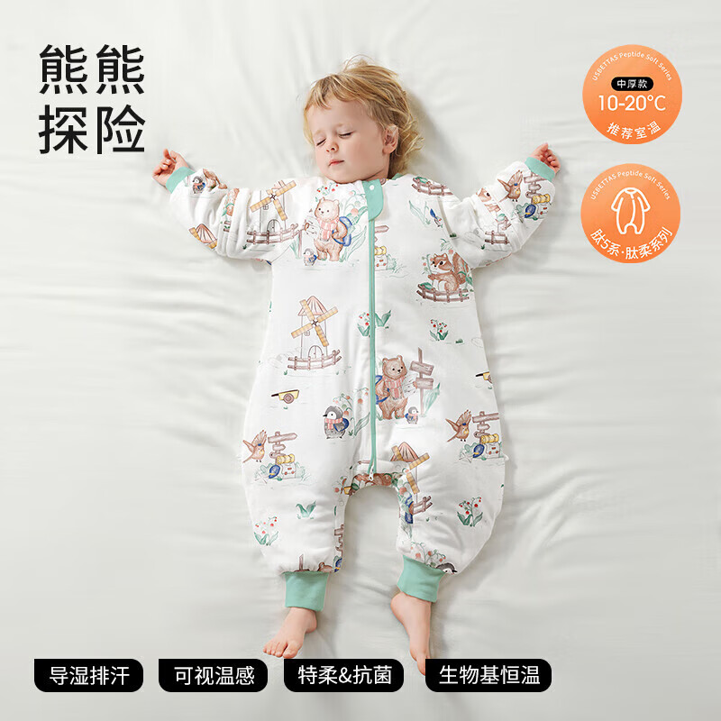贝肽斯【肽柔】婴儿睡袋春秋恒温宝宝分腿儿童防踢被四季通用保暖 天竹×恒温【秋冬中厚 室温10-20℃】熊熊探险 M【80-95cm】15个月-2.5岁