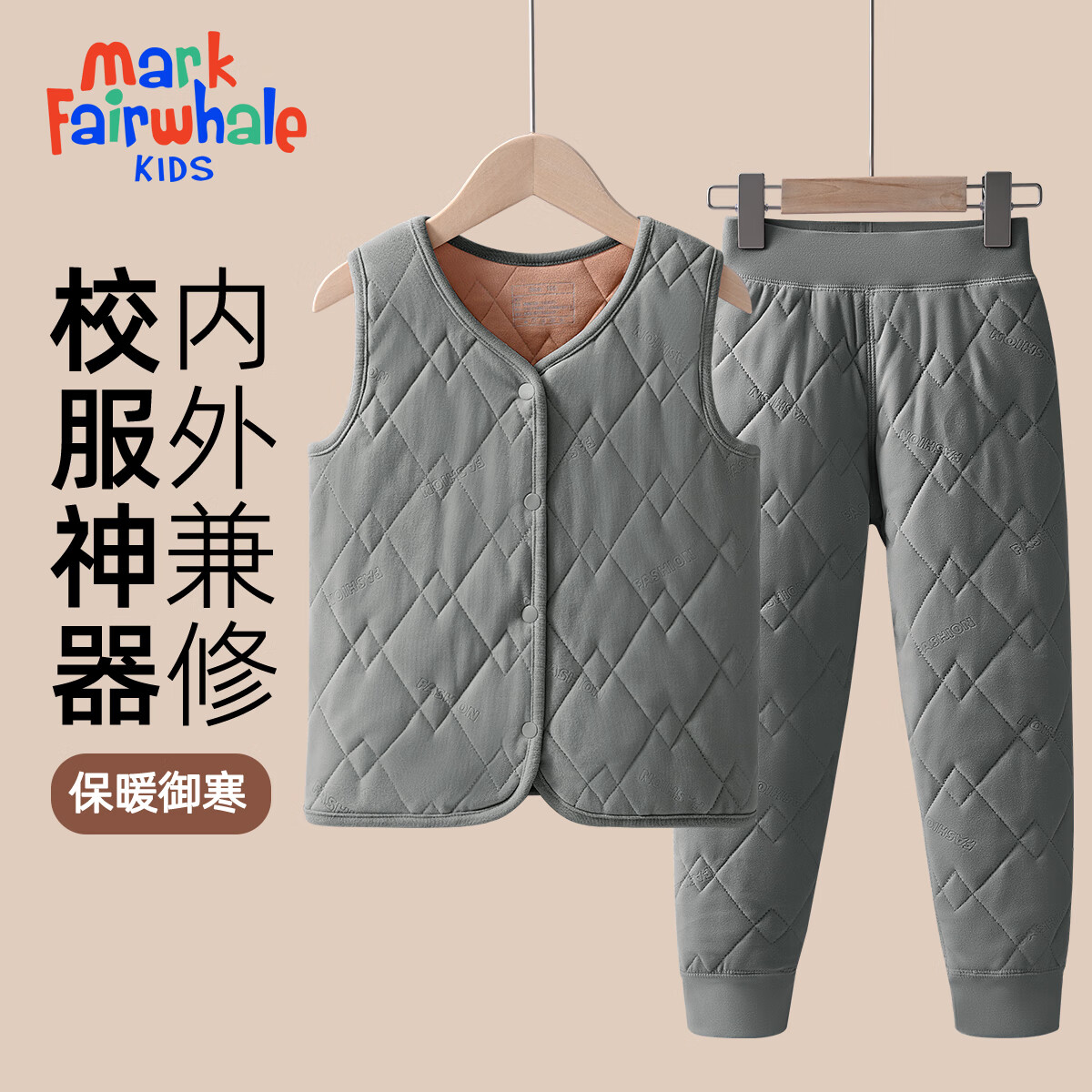 马克华菲(MARK FAIRWHALE)儿童校服神器男女童保暖套装2025新款冬季羊毛中大童马甲棉裤 纯色浅灰+纯色浅灰 160
