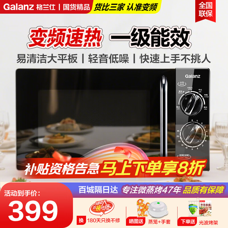 格兰仕变频微波炉 升级一级能效 家用20升平板易清洁 700瓦节能省电 简单操控 快速解冻 轻音低噪DG