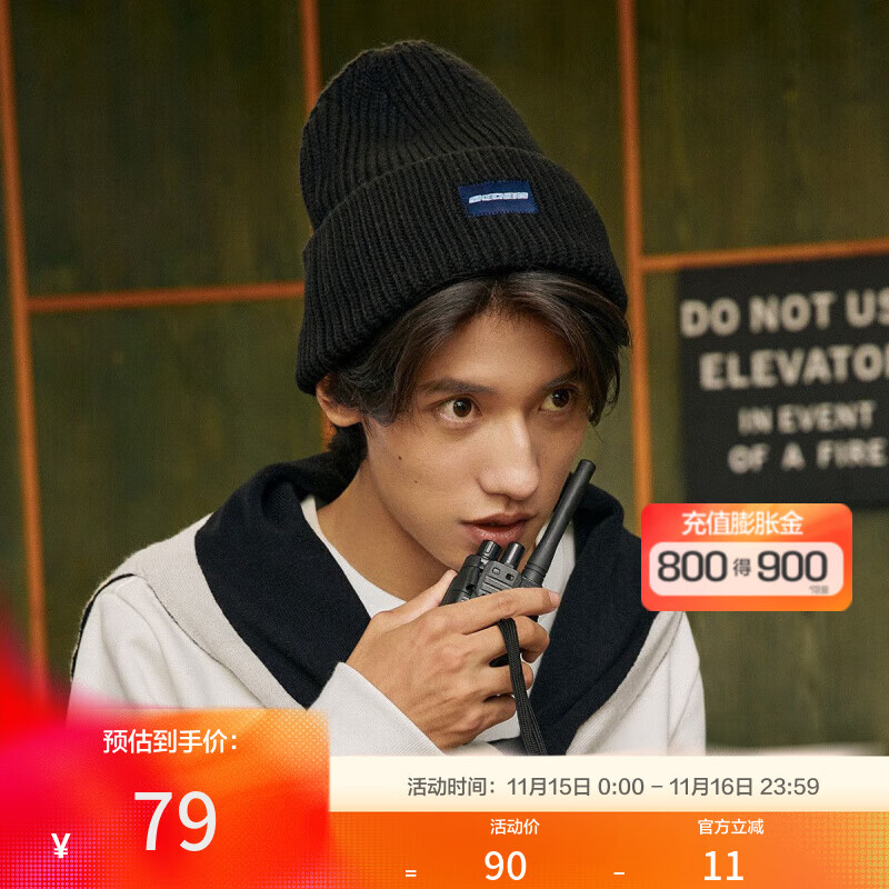 斯凯奇【多色保暖针织帽】针织毛线帽男女款大头围护耳时尚百搭帽子 碳黑/0018 均码
