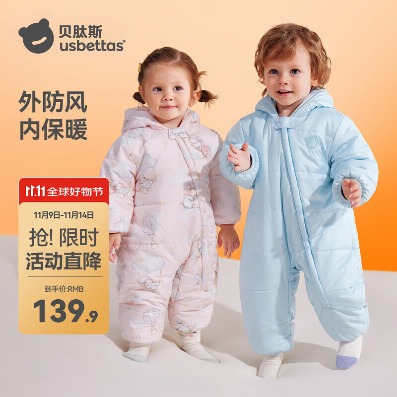 贝肽斯婴儿衣服秋冬季新生儿夹棉连体衣加厚保暖宝宝外出棉服冬装 鹅黄色 80cm