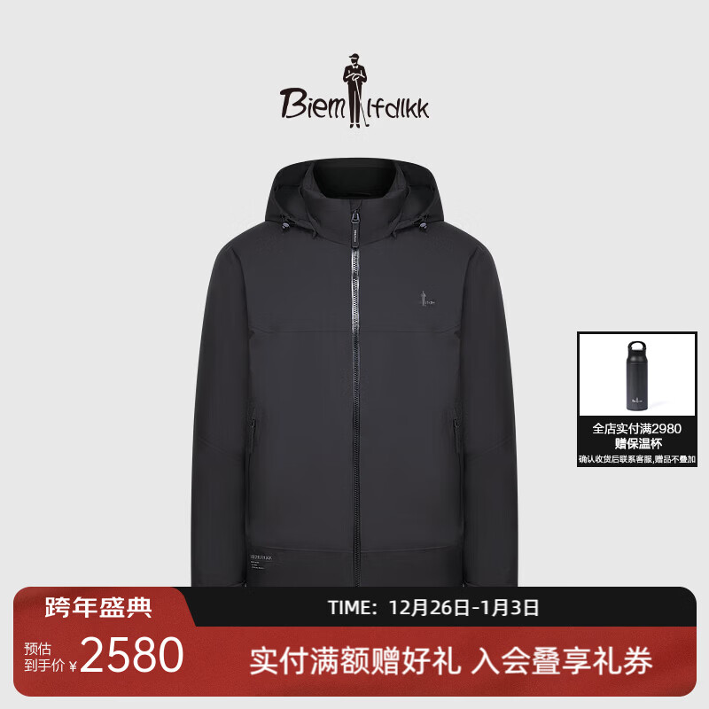 比音勒芬【法国进口羽绒】冬季男士休闲时尚轻户外防风保暖连帽羽绒服外套 07D黑 XL (110)