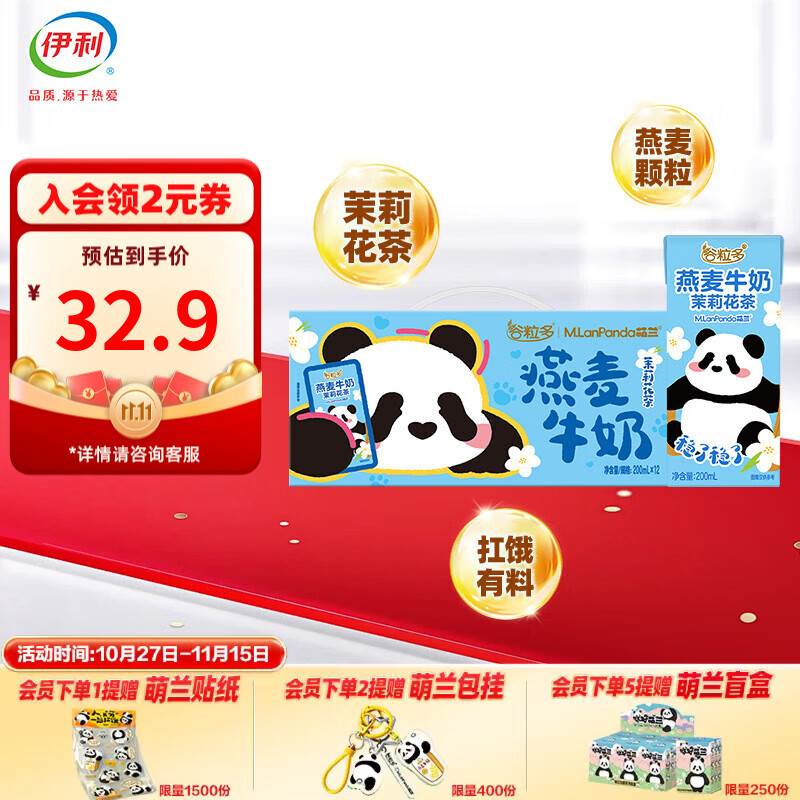 伊利谷粒多燕麦牛奶茉莉花茶味200mL*12盒/箱 萌兰ip装