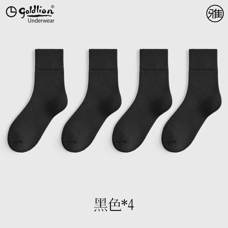 金利来男士袜子男女情侣抗菌防臭中筒袜发热加厚保暖羊毛袜休闲袜4双装 黑色*4 均码