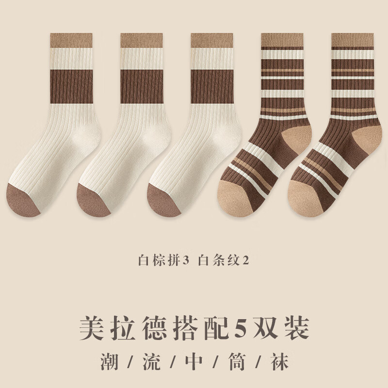宜而爽美拉德堆堆袜子女中筒袜秋冬款韩系可爱女士长筒袜 款式一 5双