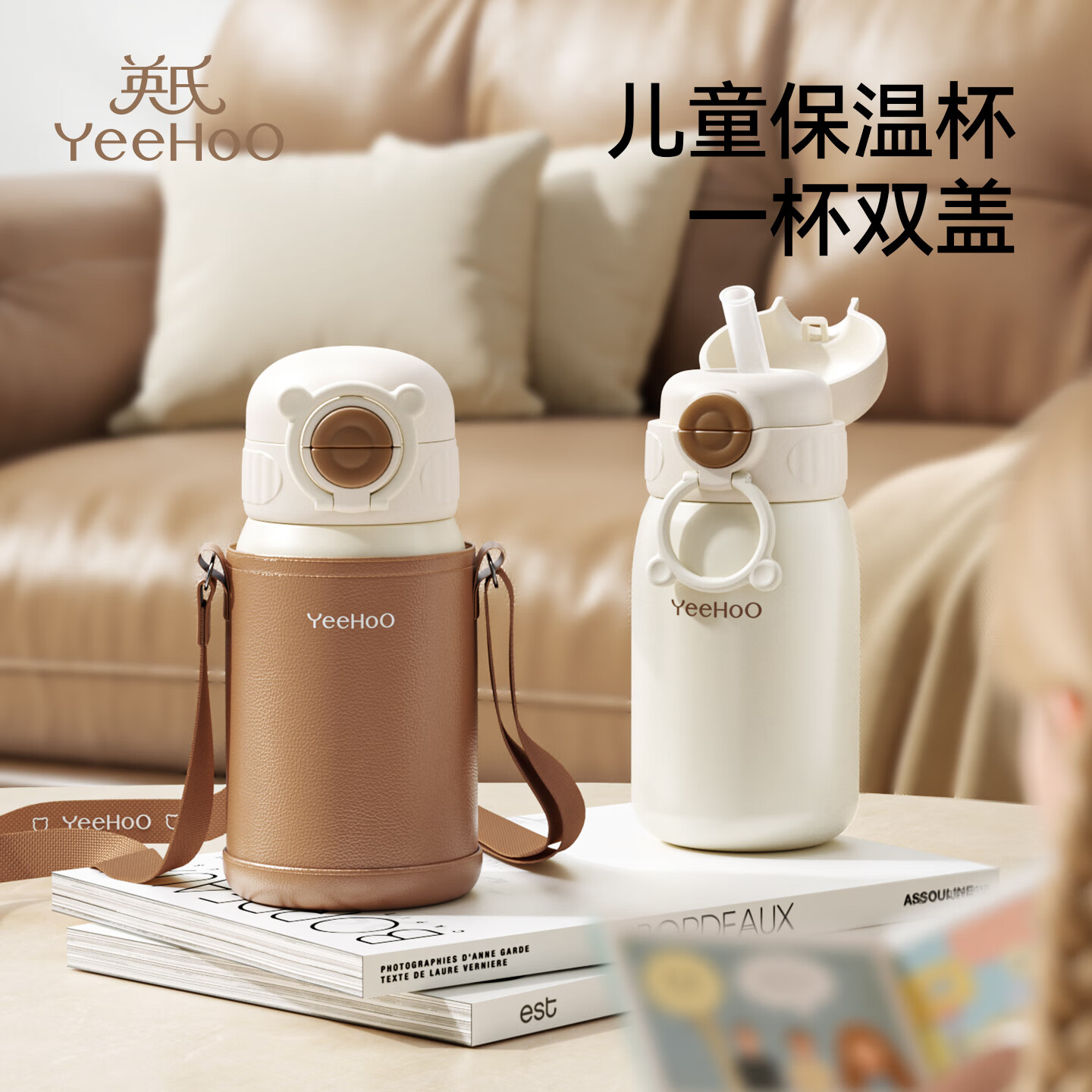 英氏儿童保温杯宝宝1到3岁婴儿奶瓶吸管直饮水杯婴幼儿园一岁以上 儿童双饮保温杯【吸管+直饮】+杯套