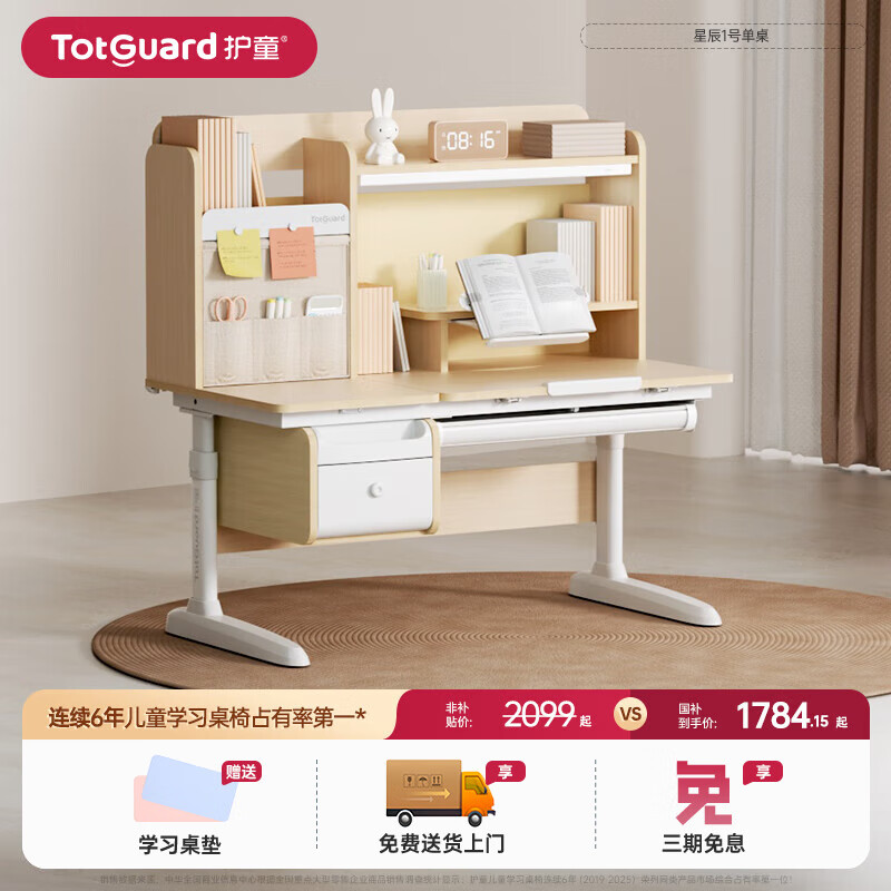 护童(Totguard)星辰1号儿童学习书桌椅护眼套装可升降中小学生桌椅子家用写字桌 星辰1号单桌(奶油风)