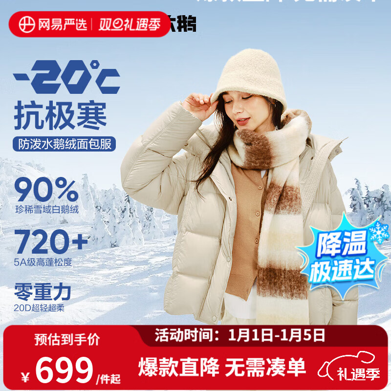 网易严选【断码清仓】90白鹅绒女士羽绒服加厚保暖5A高蓬 【24升级】短款-浅米驼 M